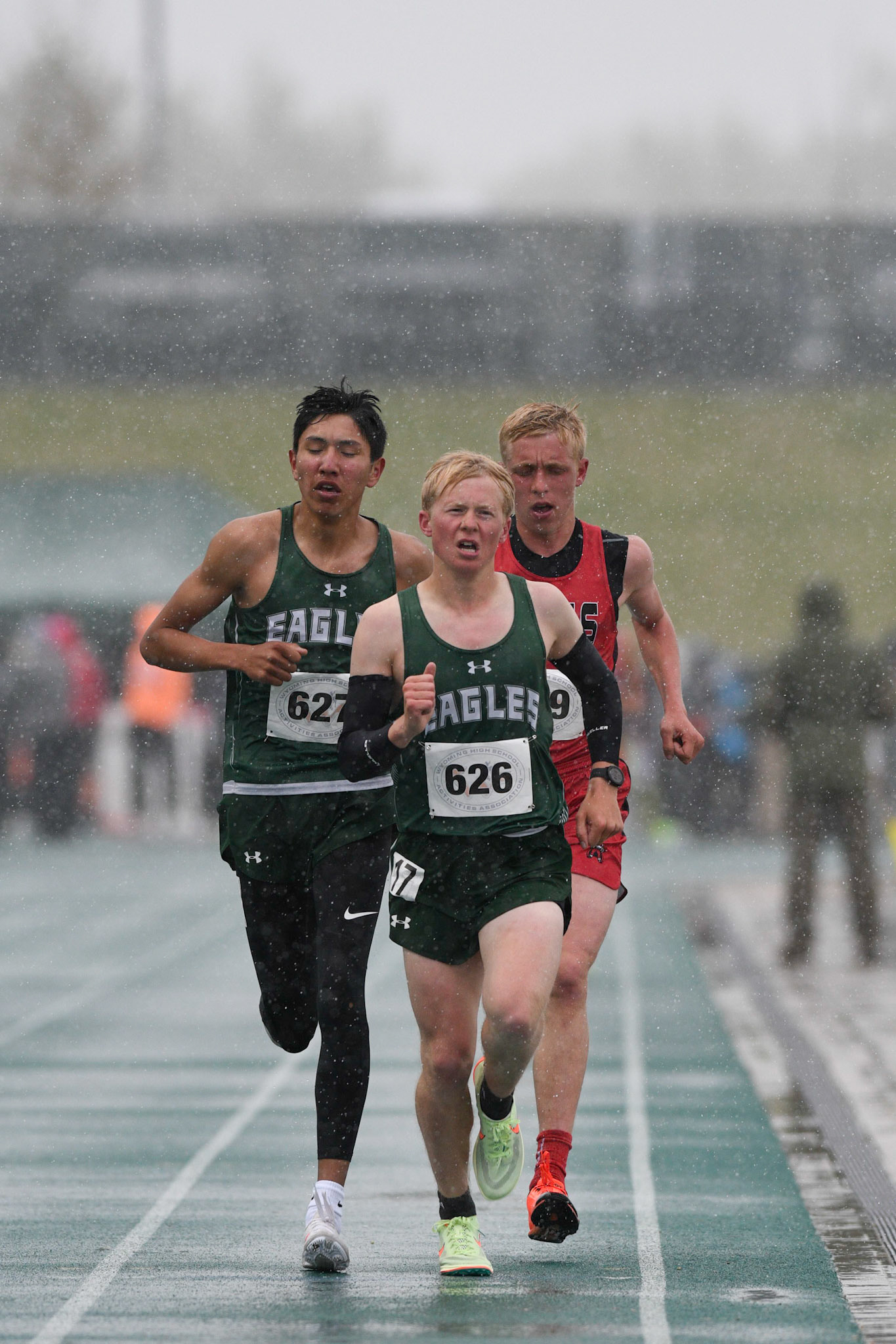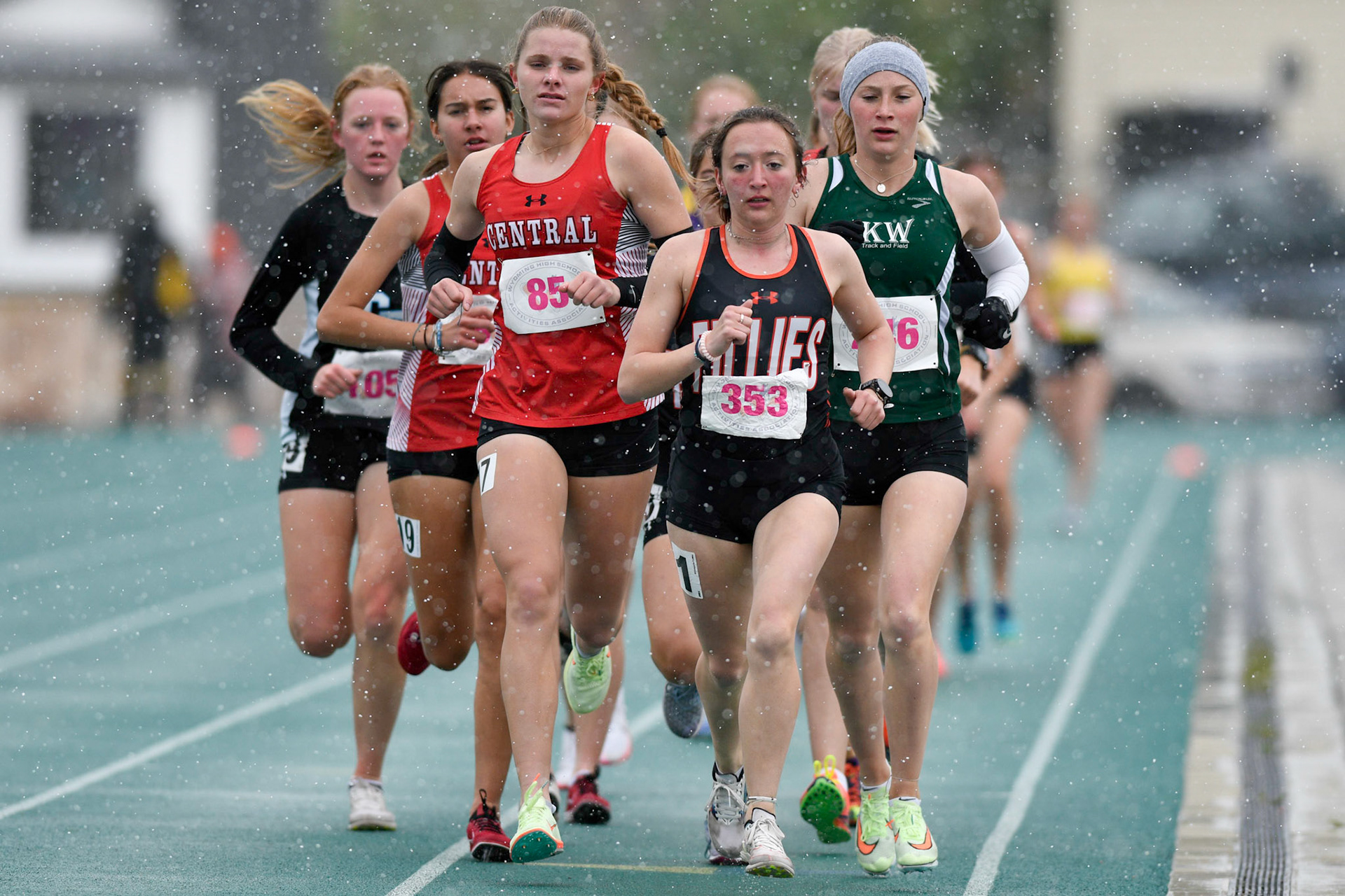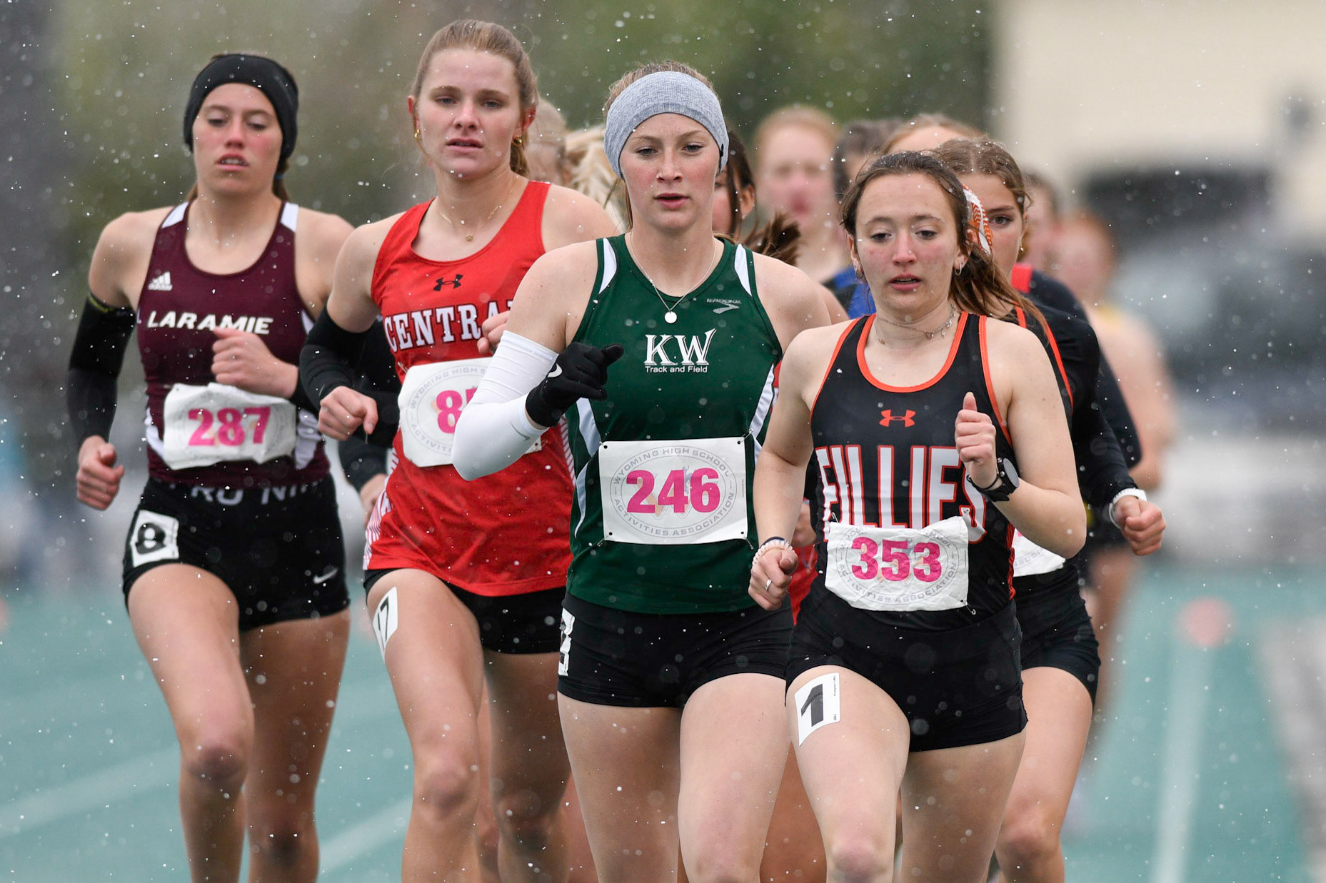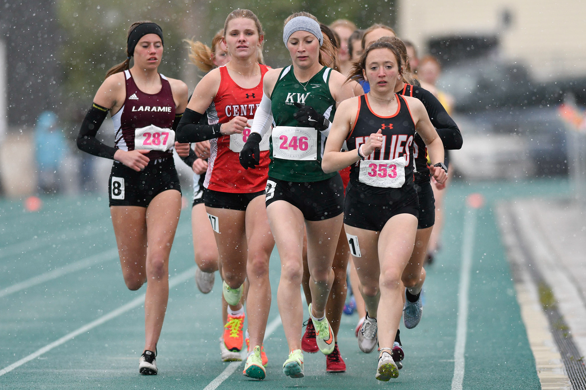 Cold and wet on day 1 of the Wyoming State Track and Field Championships at Harry Geldien Stadium.