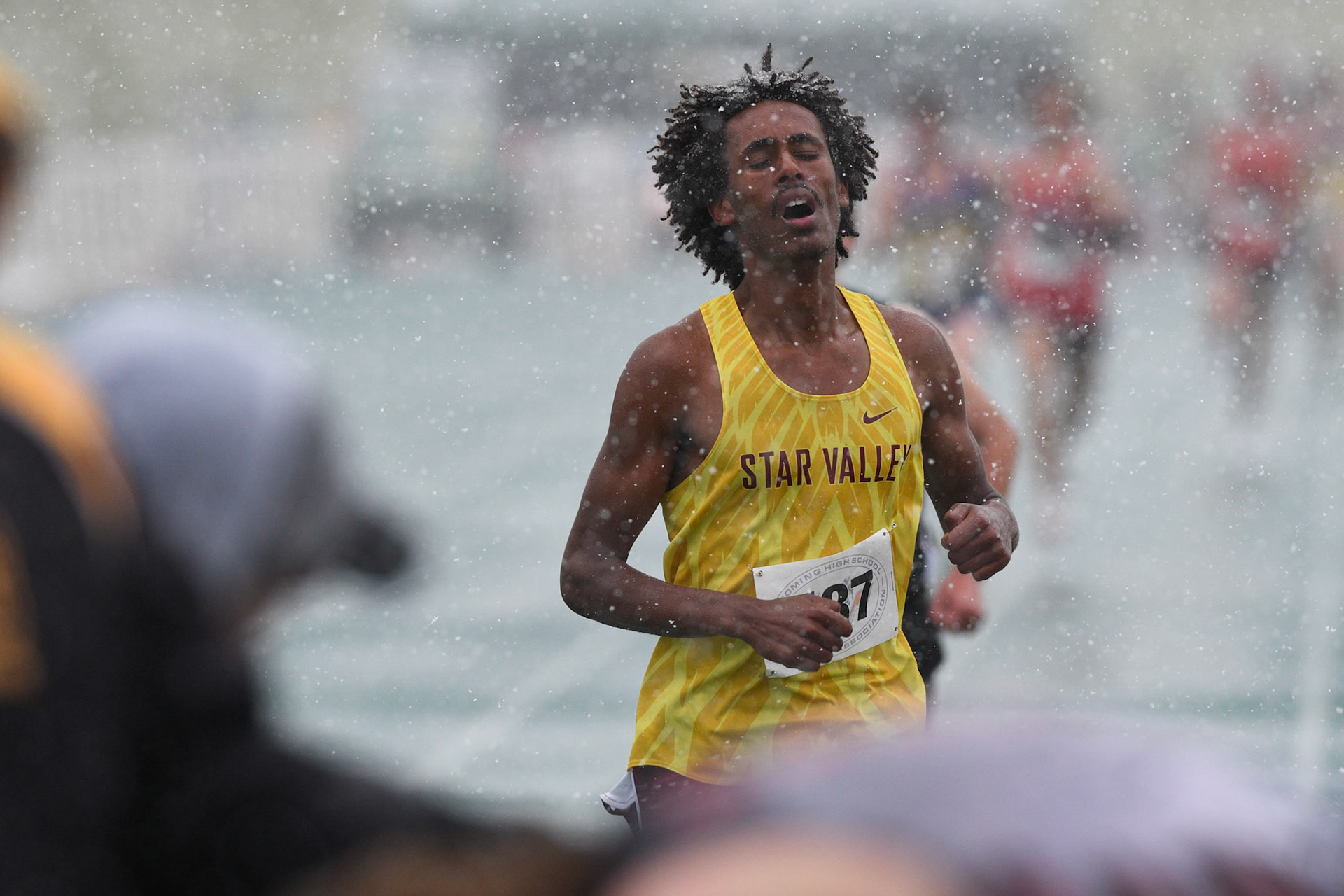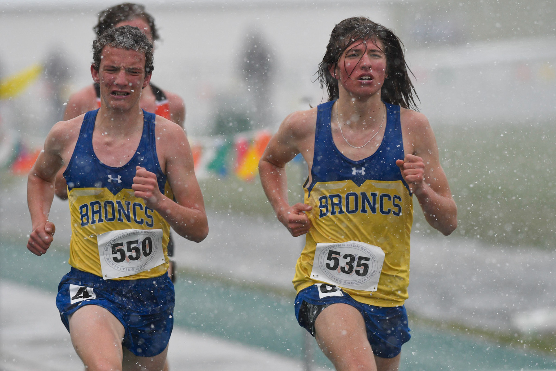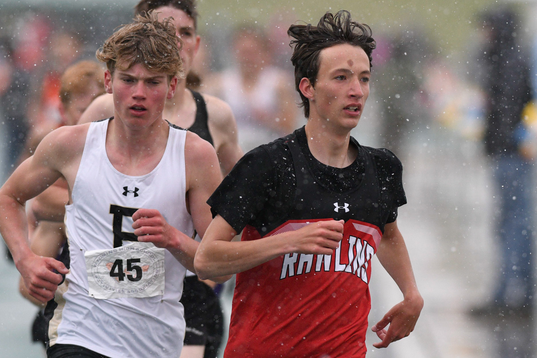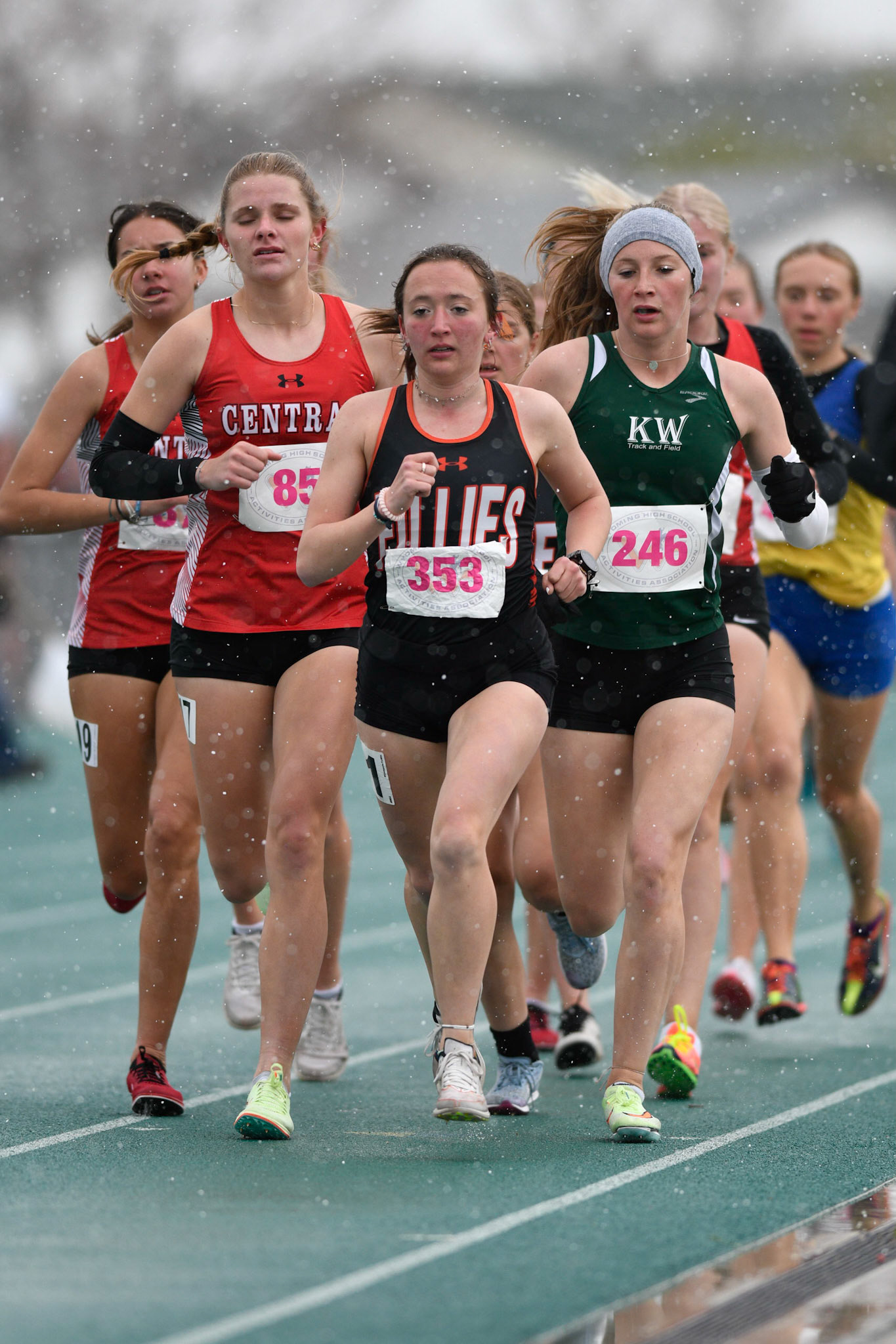 Cold and wet on day 1 of the Wyoming State Track and Field Championships at Harry Geldien Stadium.